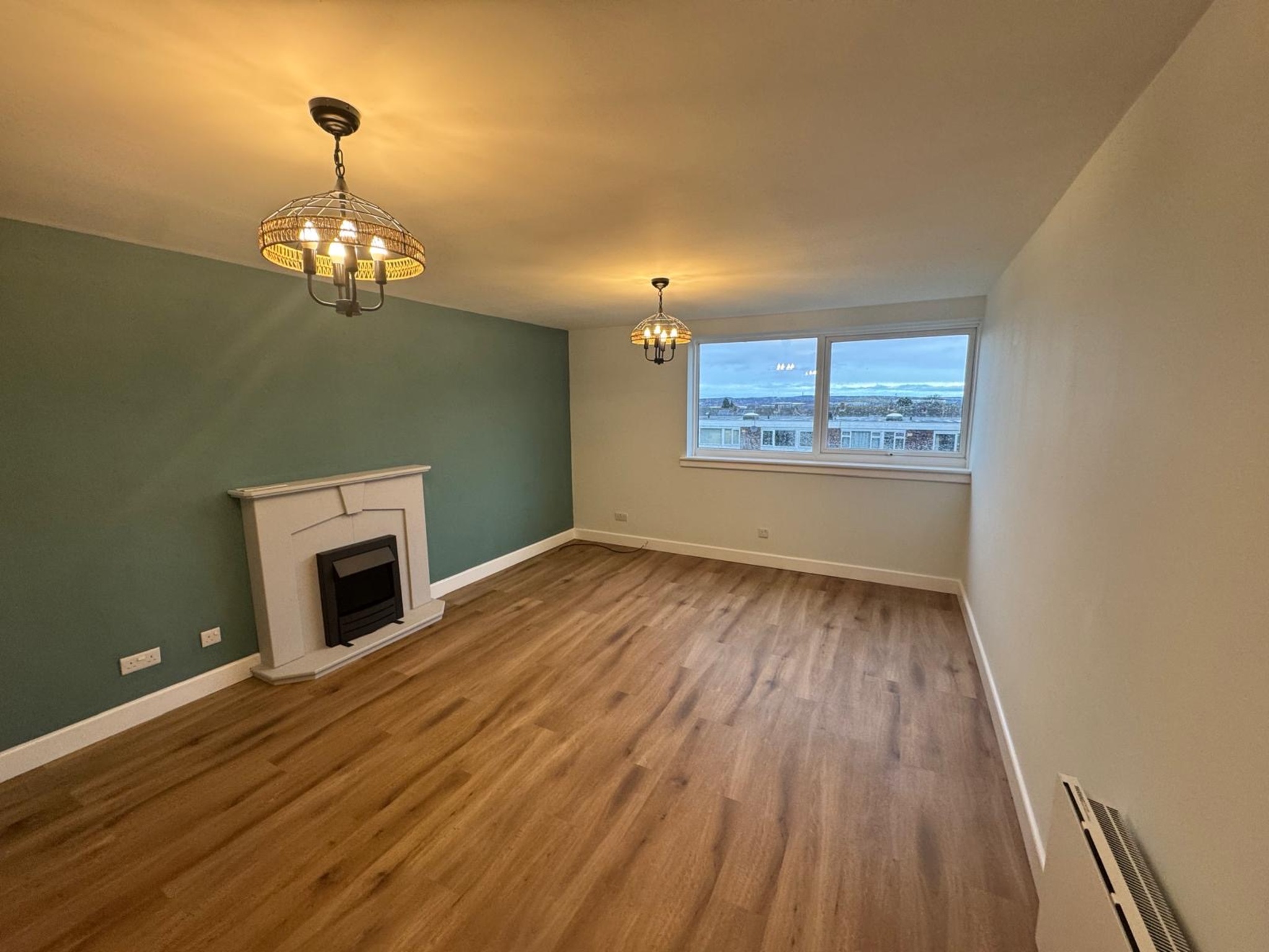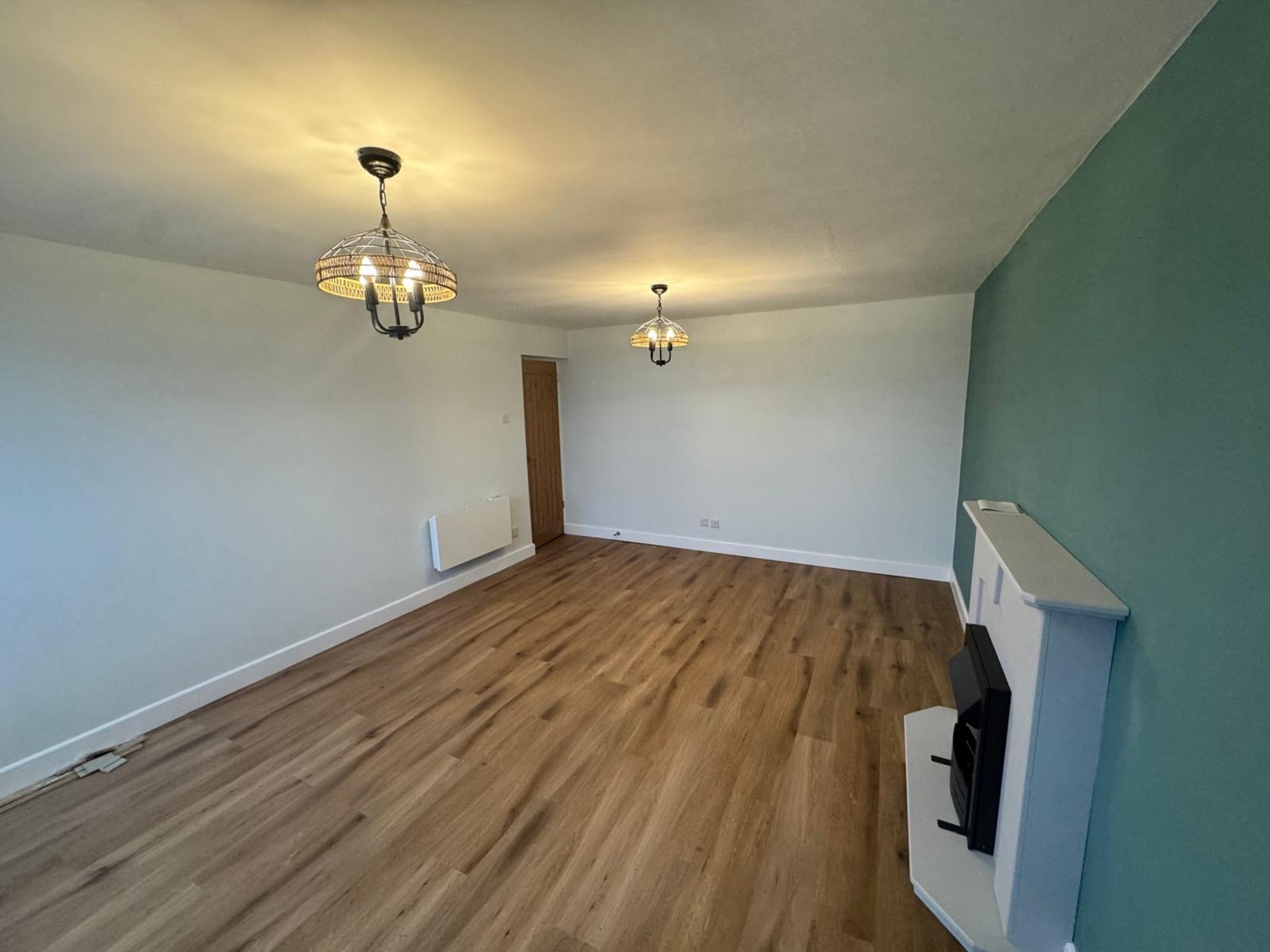 - spacious living room with electric fire.