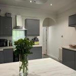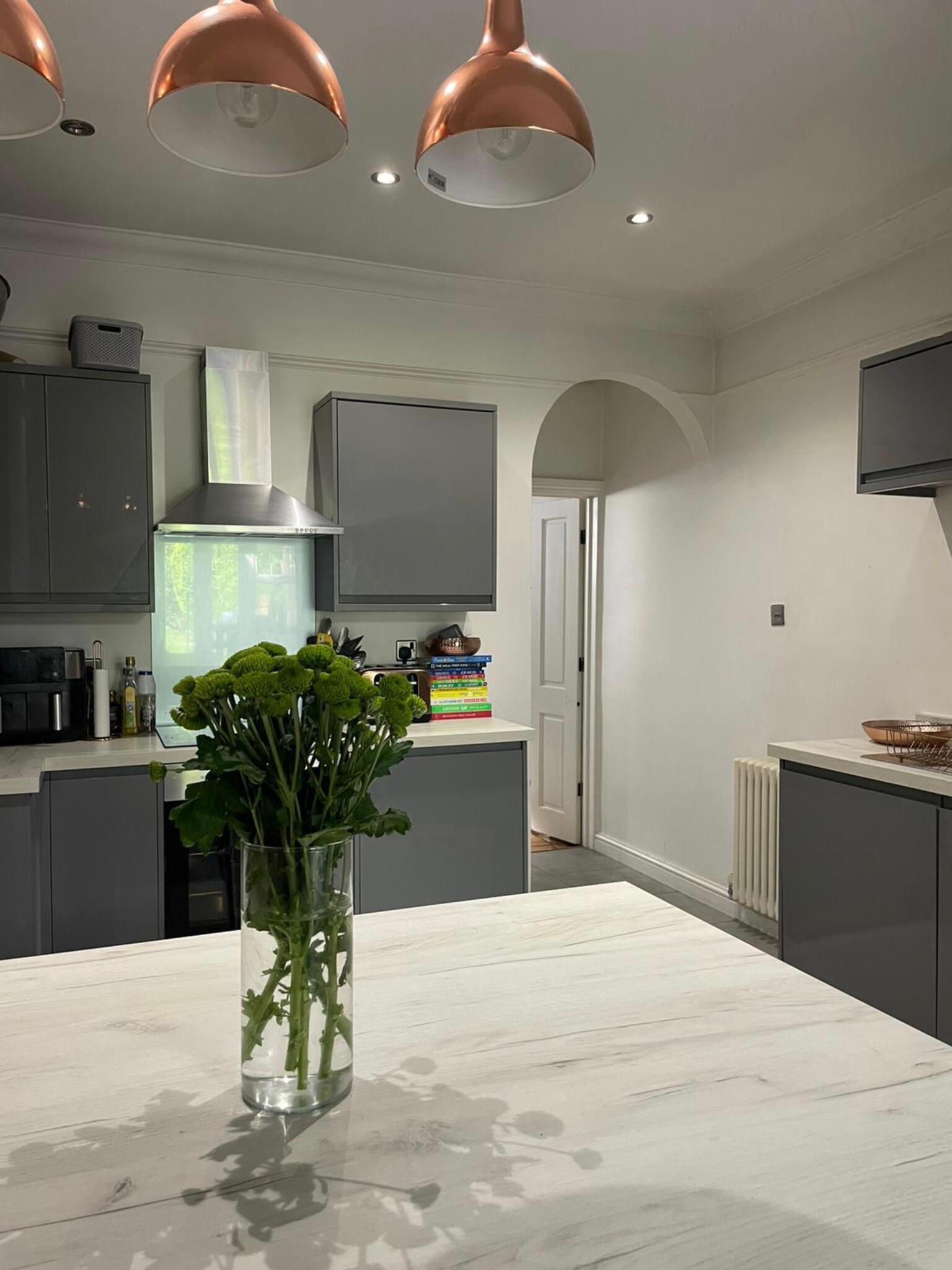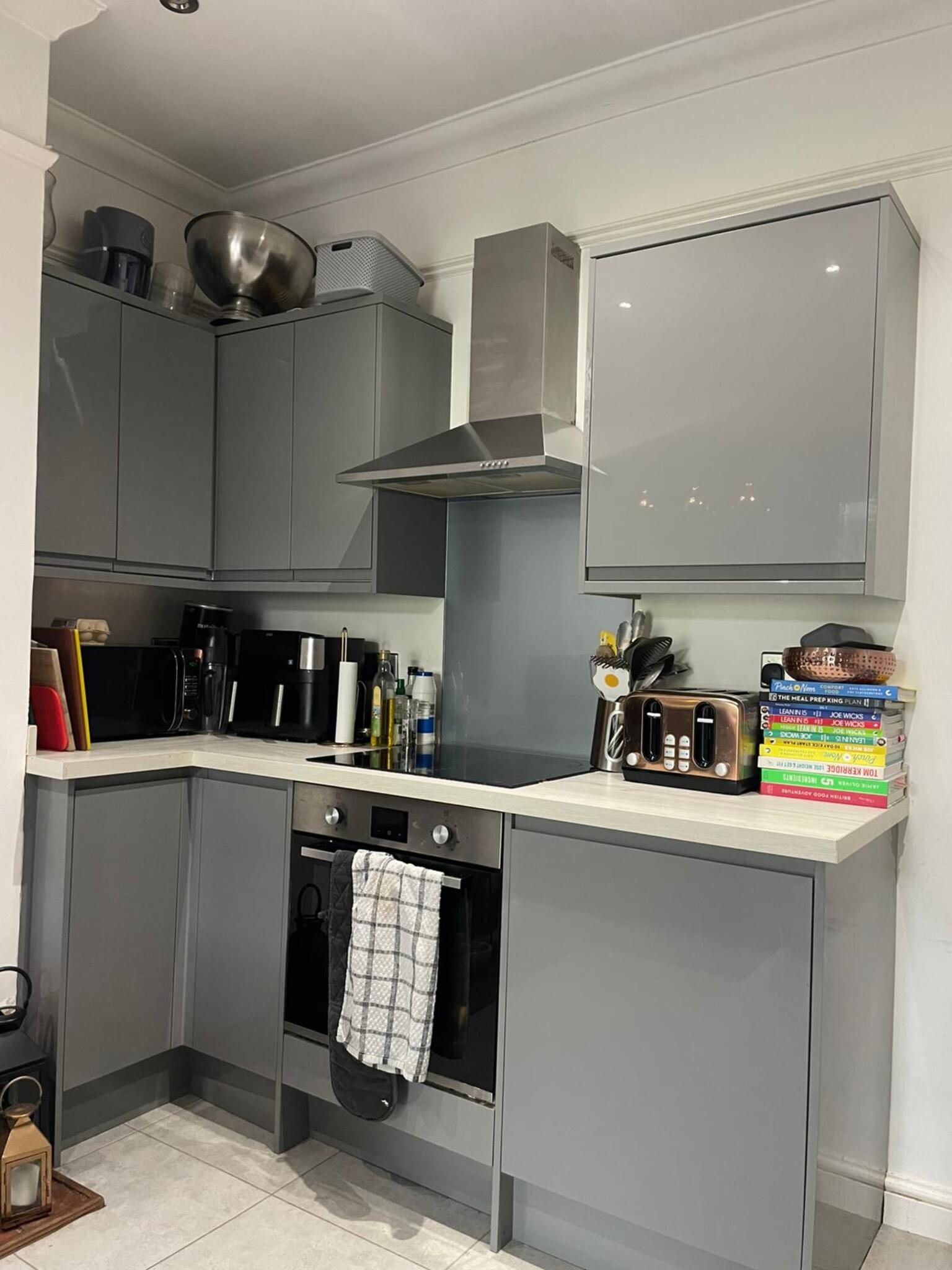 -An open plan kitchen and reception with modern appliances, all fitted and included.