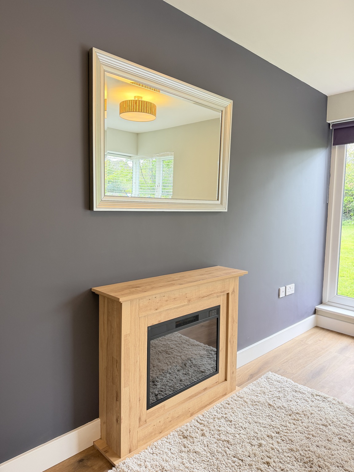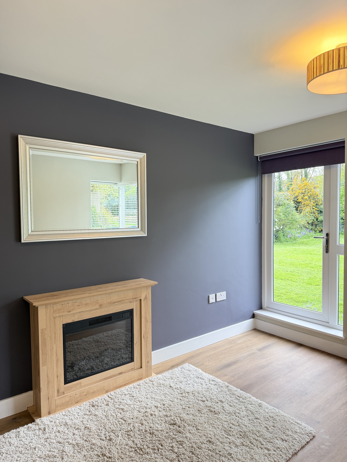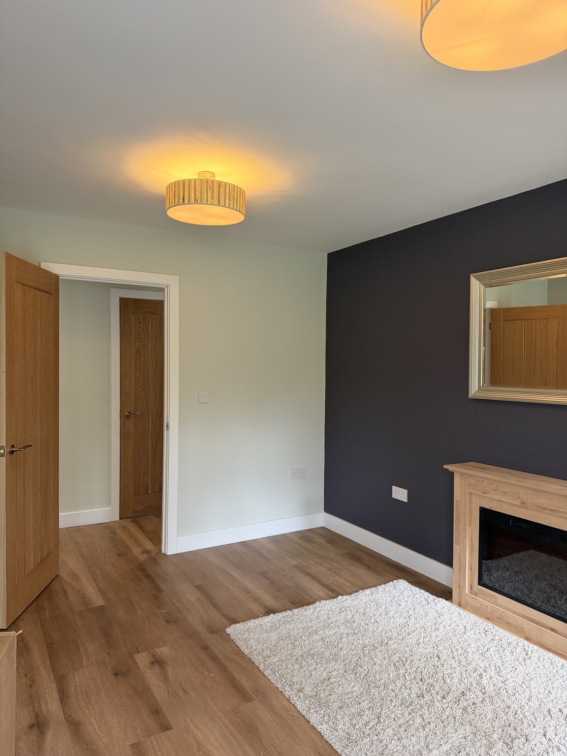 -Spacious living room with natural light sources and a feature wall.