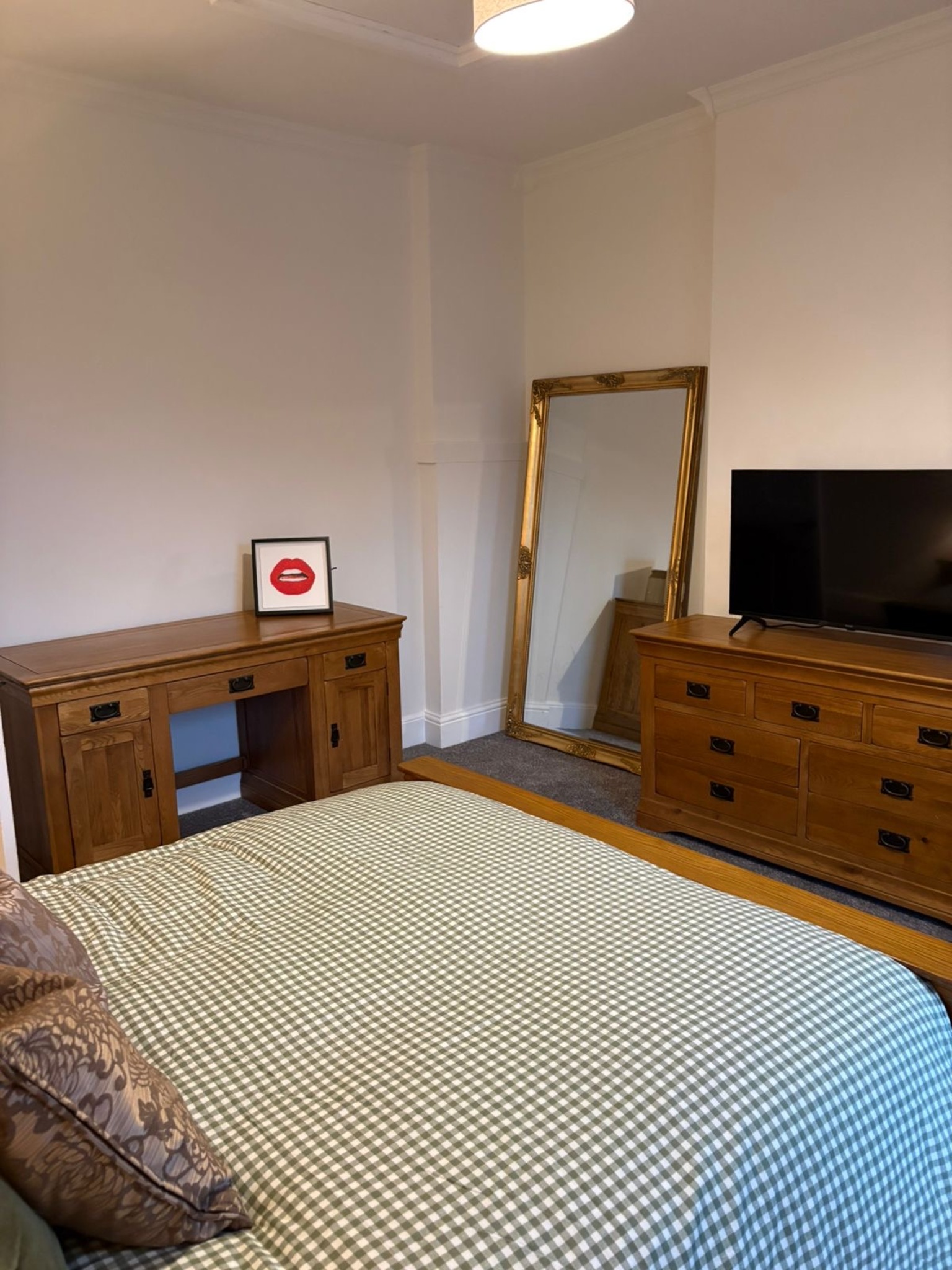 - Spacious double bedroom including double wardrobe, chest of drawers, TV and full length mirror.
