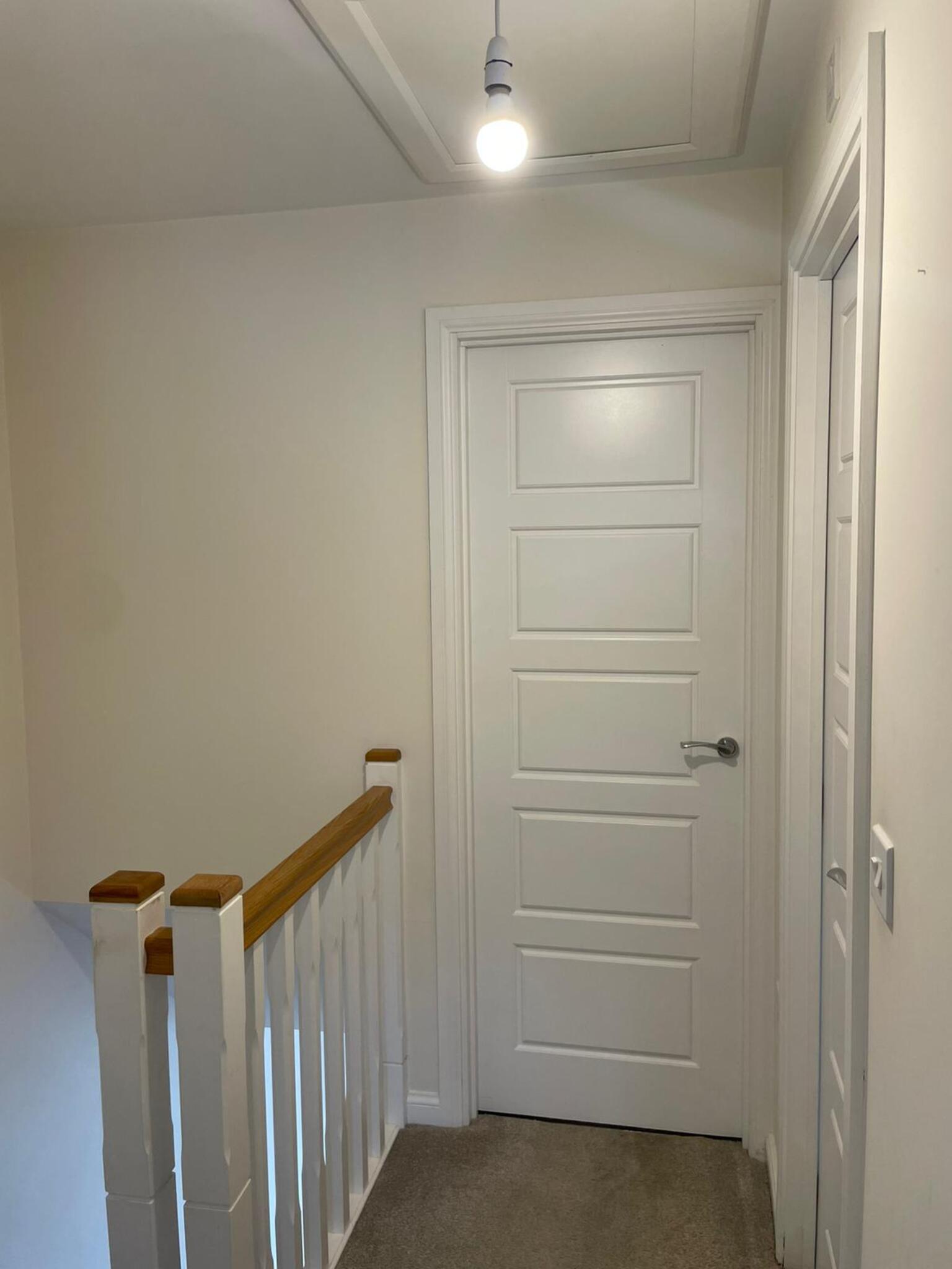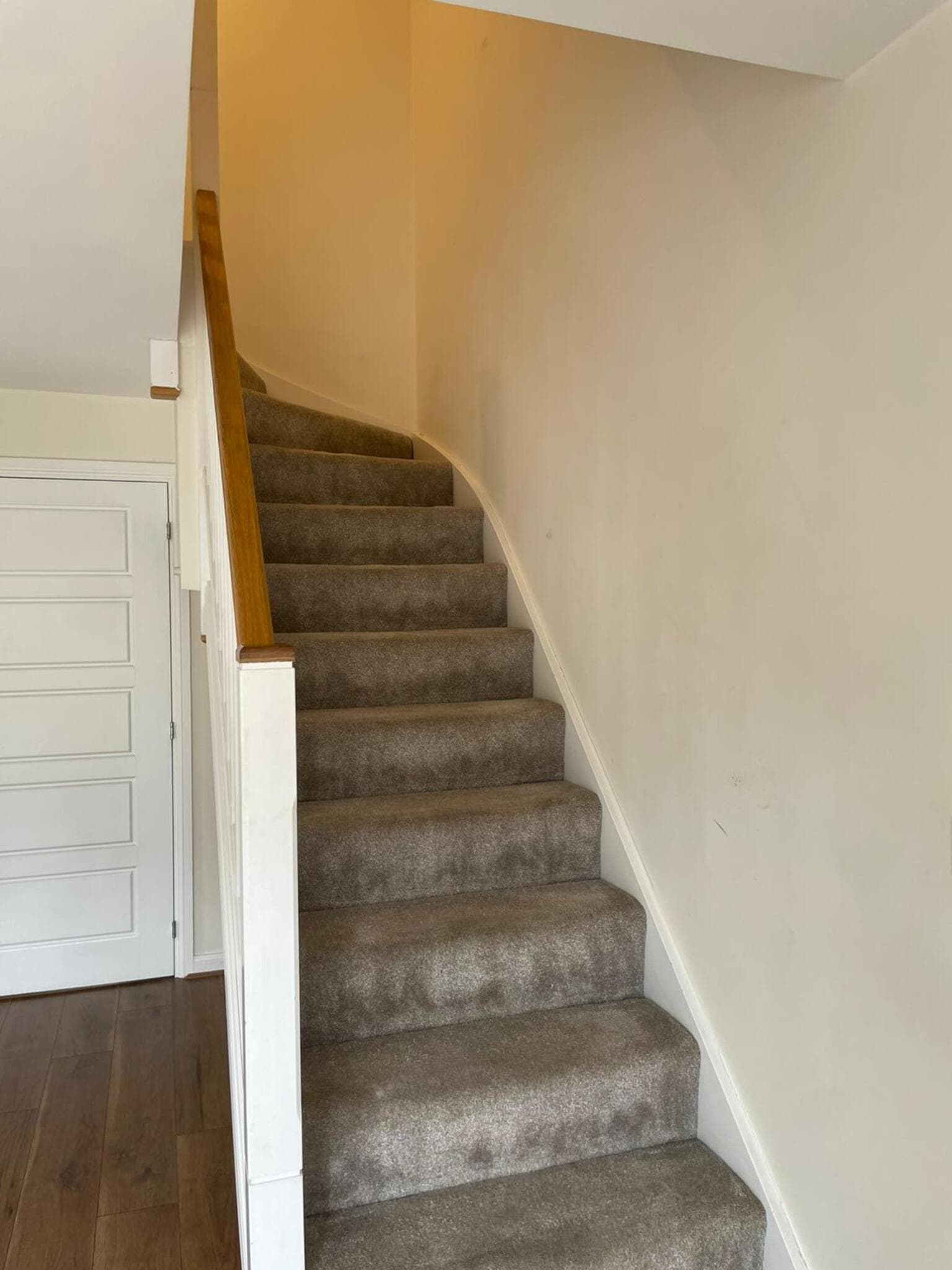 -The staircase and upstairs rooms are all carpeted, other than the bathroom.