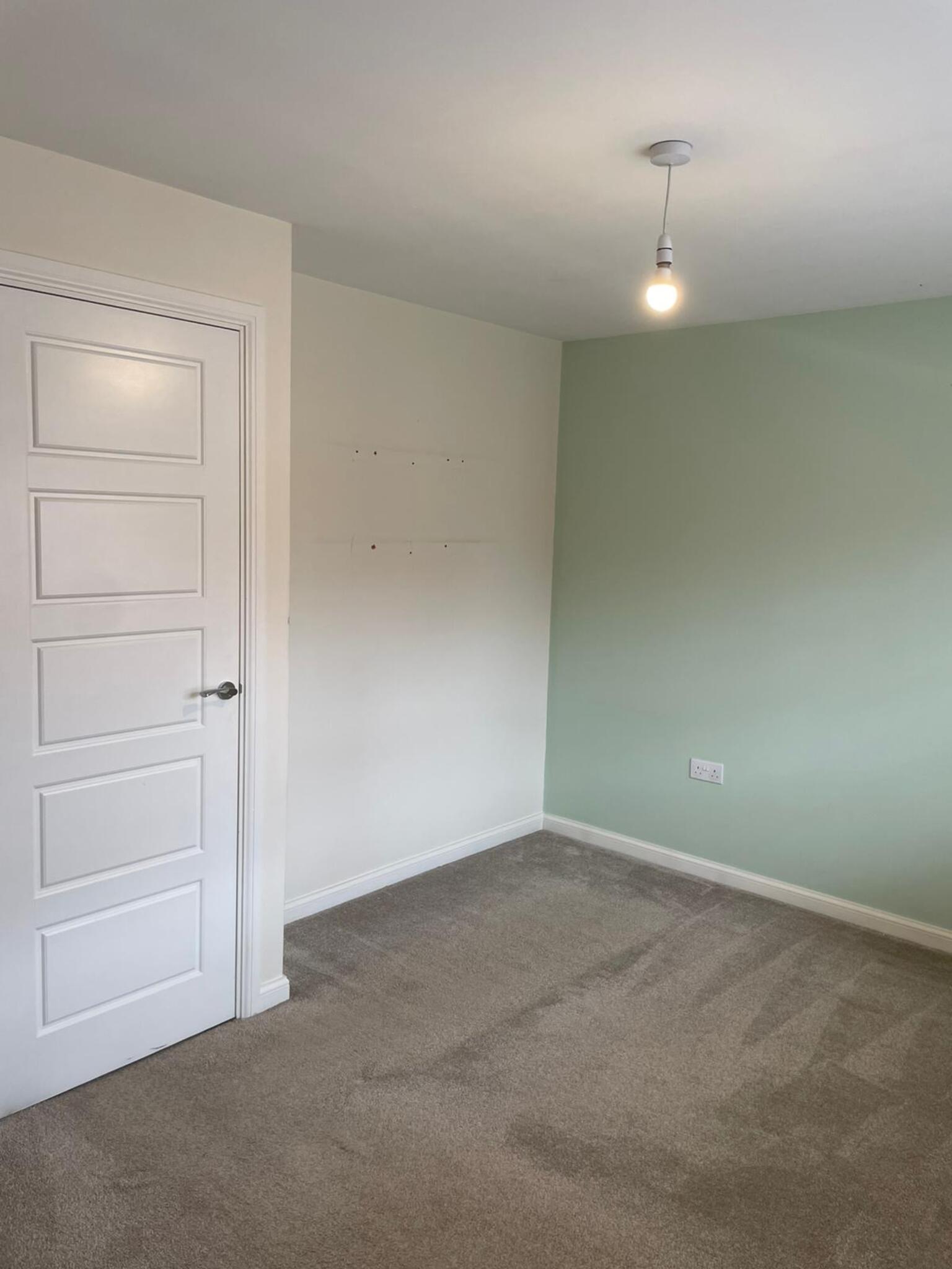 -The upstairs door on the left opens to the master bedroom, which is spacious and also has a built-in cupboard for additional storage or even a wardrobe/shoe cabinet.