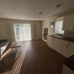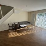 -Open plan living, dining and kitchen area for modern living, including dining set and sofa.