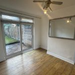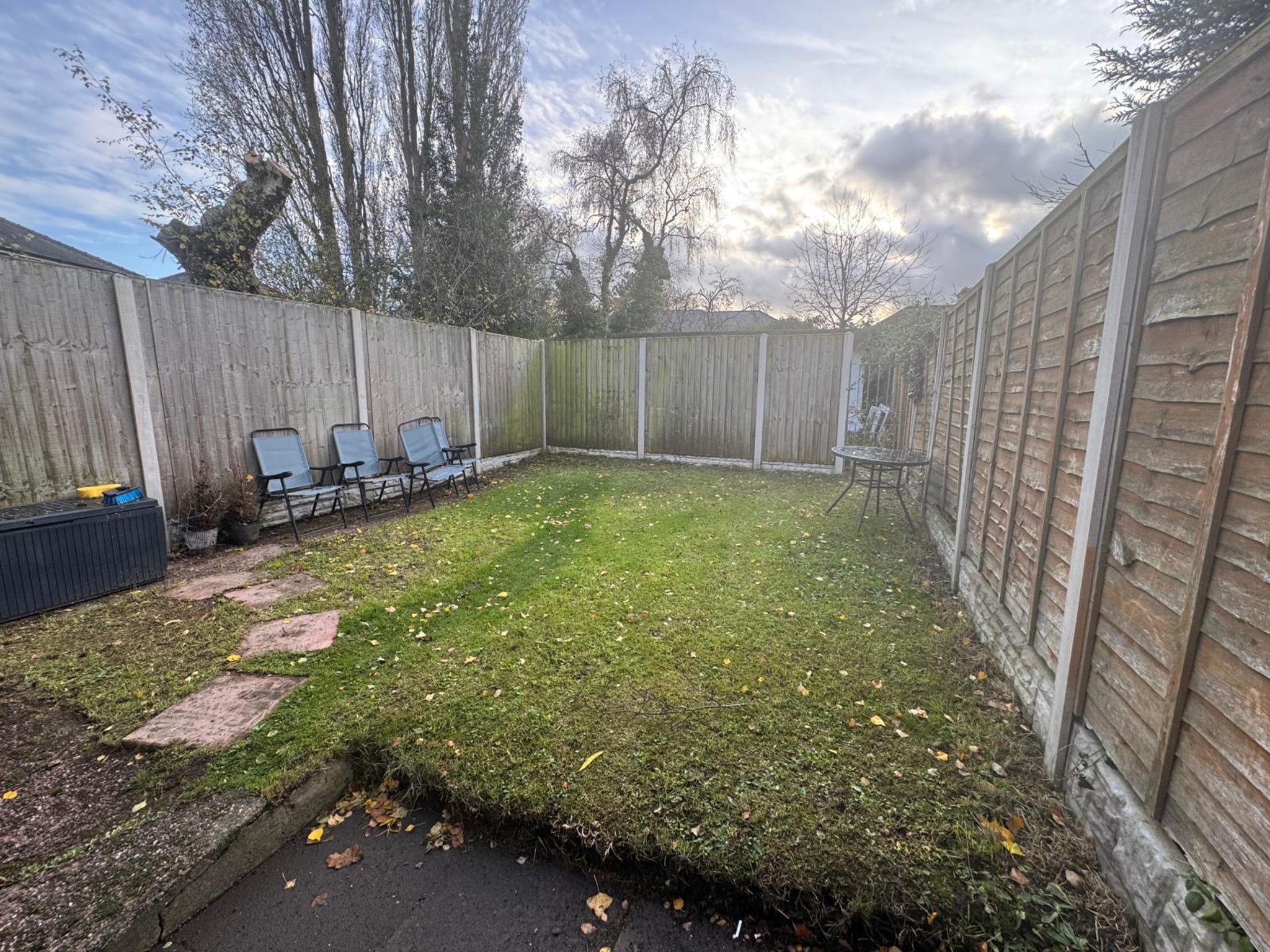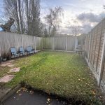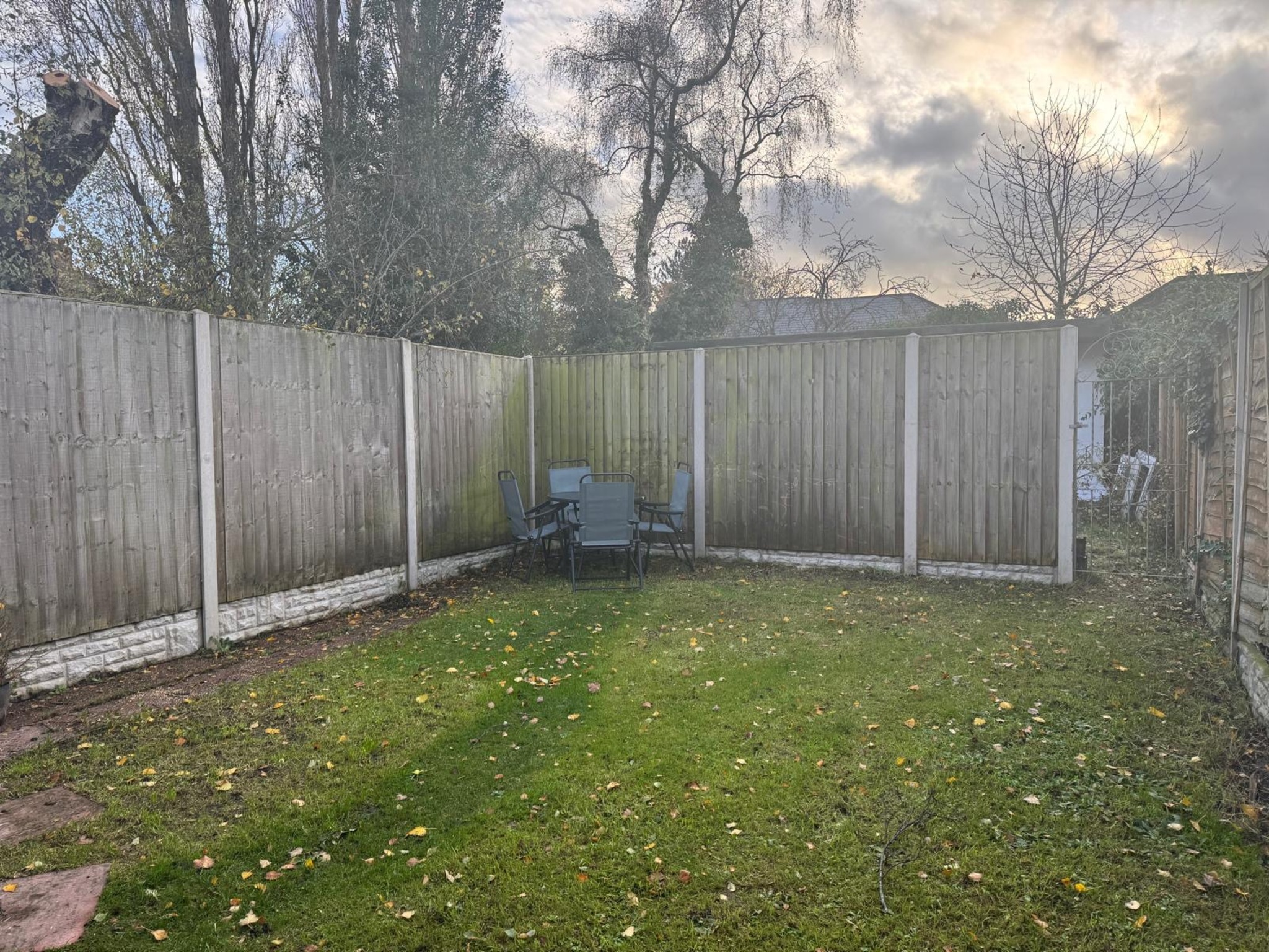 The property has a fenced driveway that has ample room for multiple cars, as well as a private, rear garden with both grass and patio.