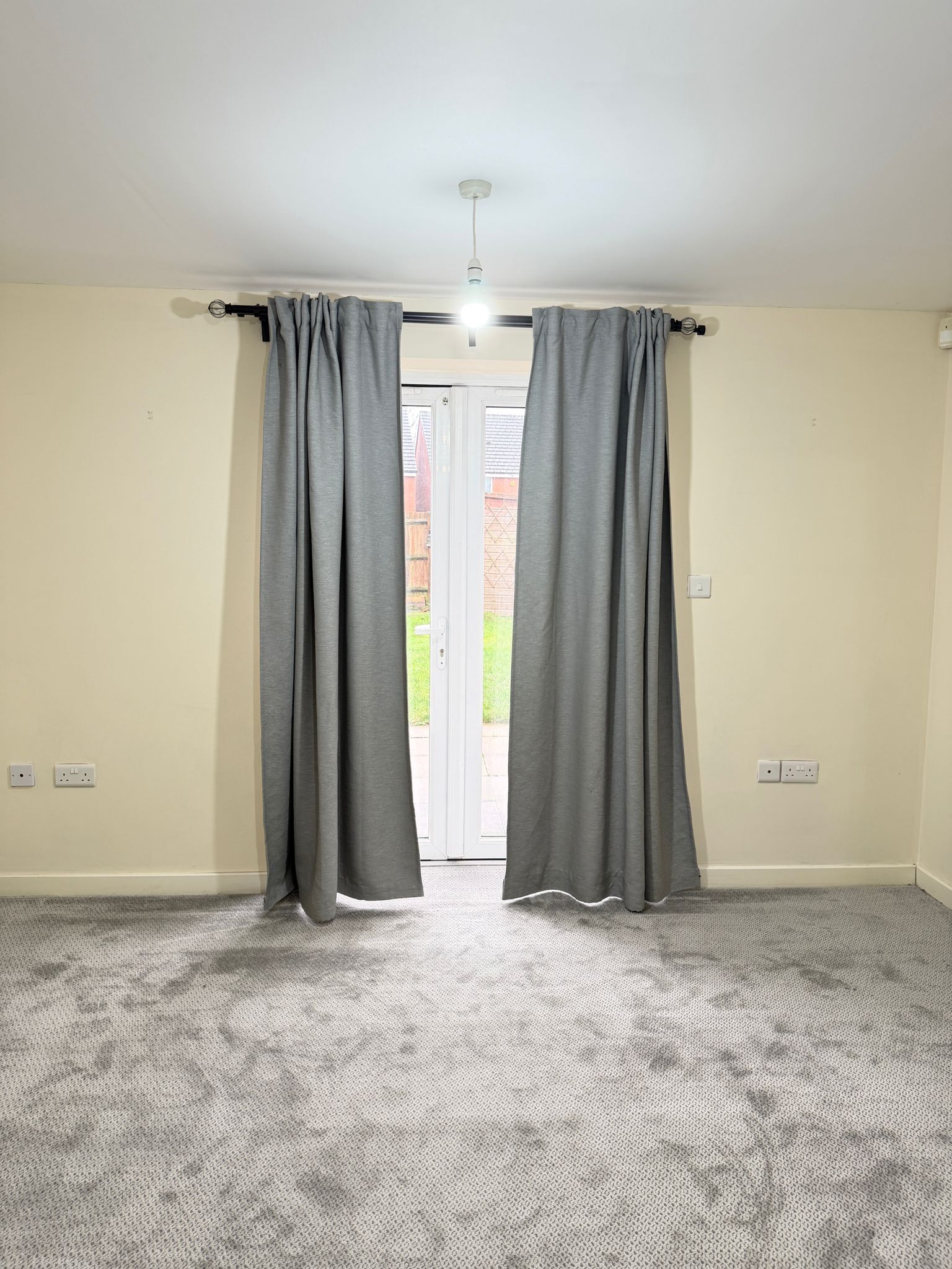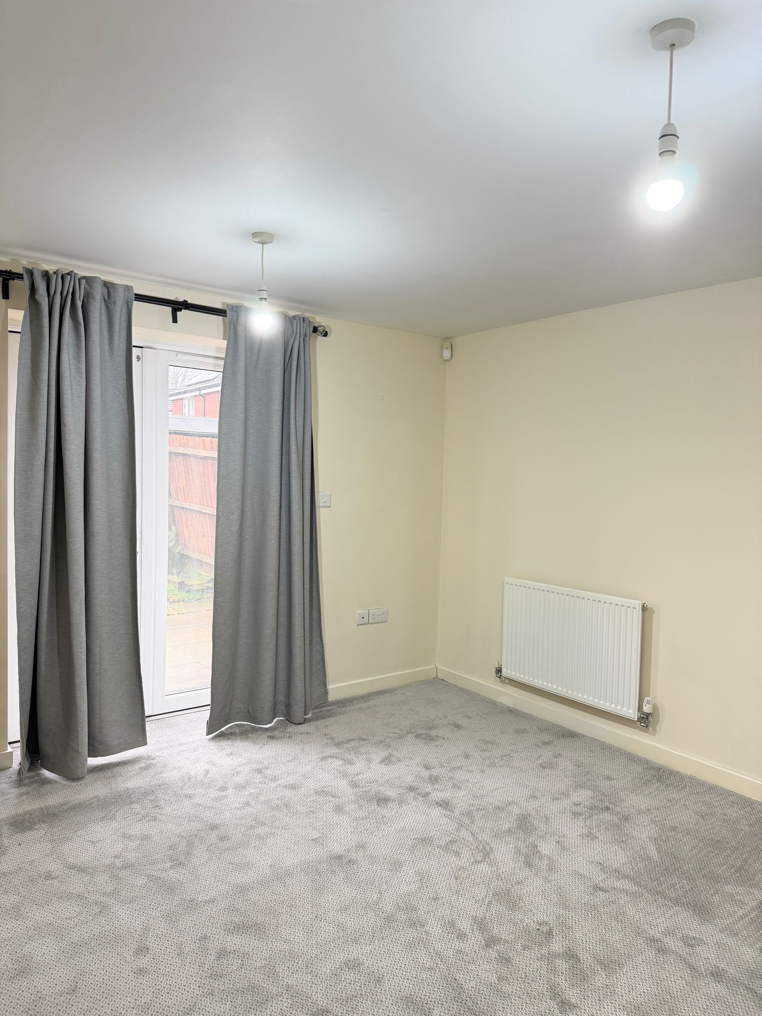 -Spacious living room with French patio doors leading to the garden.
