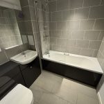 -A modern fitted bathroom with a dual bath and shower for comfort.